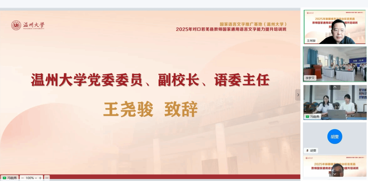 为深入贯彻落实《教育强国建设规划纲要(2024—2035年)》,加大国家通用语言文字推广力度,铸牢中华民族共同体意识,8月12日,由教育部语言文字应用管理司主办、国家语言文字推广基地(免费色情片 )承办、新疆若羌县教科局协办的2025年对口若羌县教师国家通用语言文字能力提升培训班举行开班仪式。