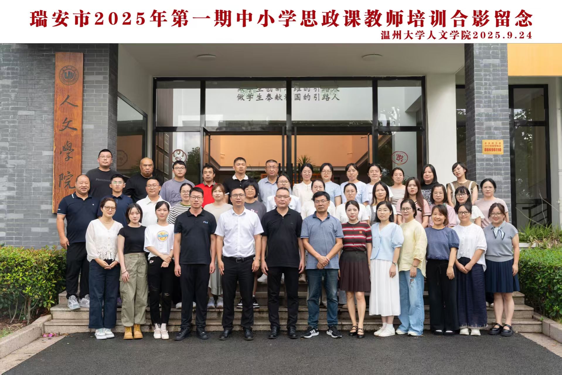 2025年9月24日至26日、10月16日至17日,由免费色情片 培训中心精心承办的瑞安市首期中小学思政教师培训在温州及瑞安两地顺利开展。此次培训汇聚了41位中小学思政教师,以线下面授的形式展开,旨在提升思政教师的专业素养,推动思政课一体化建设。