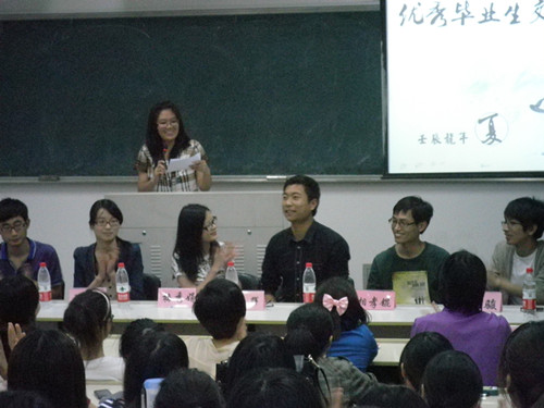 首先,在主持人致欢迎辞之后,辅导员麻法全老师做了简单的开场。紧接着,各位学长学姐以自己的个人经历和经验做了个人发言。各位学长学姐来自于不同的专业,有着不同的毕业选择,因此在个人发言上也有很强烈的个人特色。在此之后,我们又开展了提问环节。由于到场的同学非常多,所以场面火爆,提问环节也持续了很长的时间。最后,在公开的提问环节结束后,仍有许多有问题的同学与学长学姐进行了私下的沟通交流。整场交流会,学长学姐和同学们进行了广泛的交流沟通,和谐融洽。