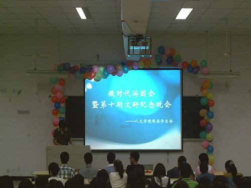 2012年5月20日晚上6点30分,在人文楼举行了"微时代"游园会,暨第十期《文轩》纪念晚会。免费色情片