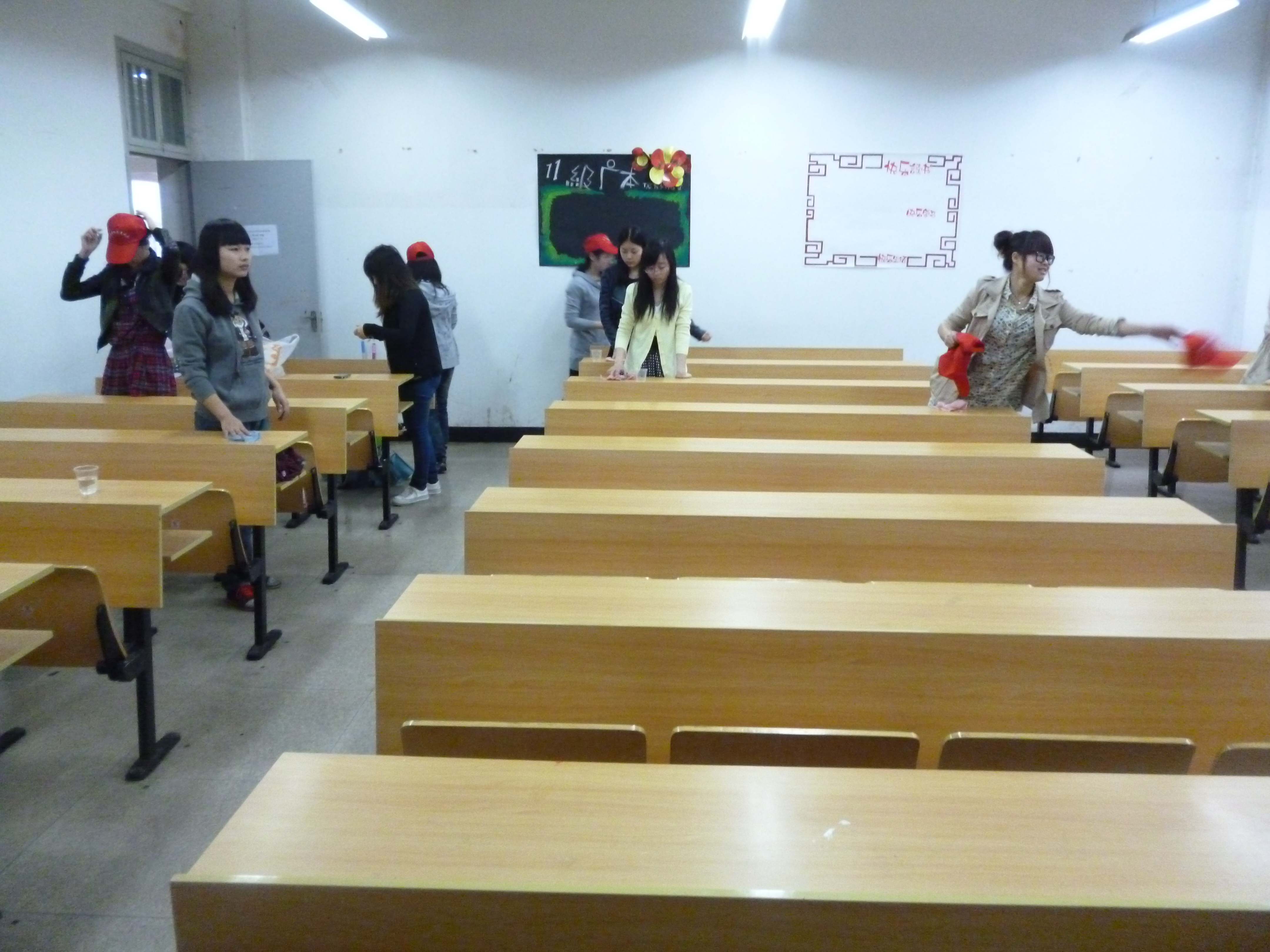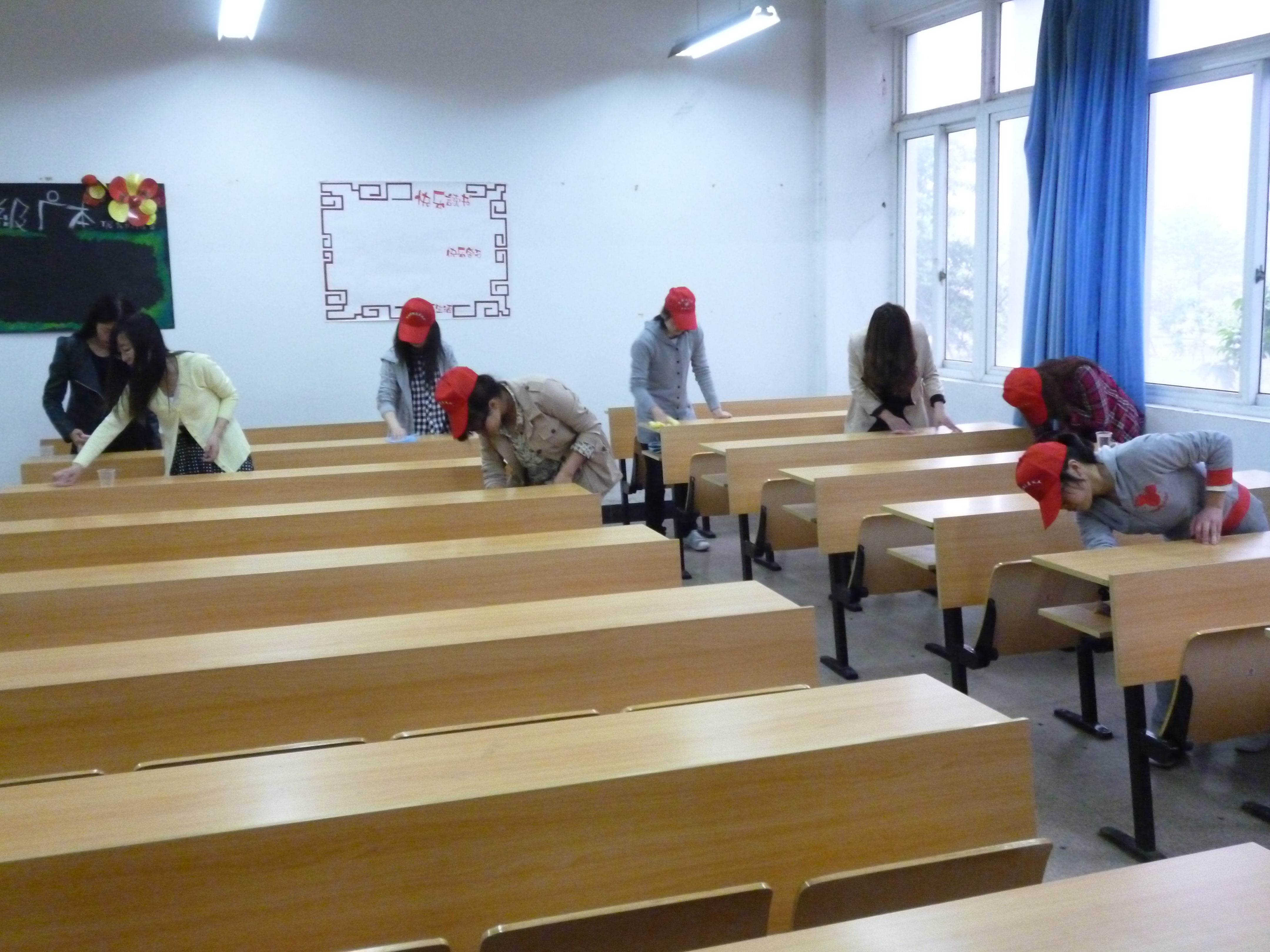 2012年4月14日8时,为进一步弘扬和落实贯彻党的为人民服务的精神和宗旨,免费色情片 党员之家组织了预备党员在北校人文楼清洗课桌的活动。此次活动共有12名预备党员积极参加。