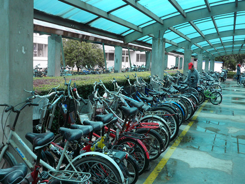 下午,天微暗,雨纷纷。但是,志愿者们还是守时地撑伞来到了C区的门卫处集合。他们迅速戴上小红帽,换上了志愿者的行头。在队长分配好任务,各自组队完成后,每个队向自己的目的地前去。雨点碎了一地,志愿者们走过一路水花。到了车队前,他们两两配合,你撑伞,我摆车,相当默契。最幸福的是在棚里排车的志愿者,免去了撑伞遮雨的不方便,效率就更高了。他们仔细地将倒在地上的自行车扶起来,将突出来的车推进去,小心翼翼地撑好车脚,还要站远了看一看是不是整齐,真是认真呢!志愿者们就这样努力着,付出着,任雨淋湿他们的手臂,他们的背脊,依旧开心地笑着。经过两个多小时的工作,志愿者们将C区各个宿舍楼下的自行车都整理好了。一列列的车整齐地排列着,C区看起来更加整洁有序了。志愿者们,撑着伞,在雨中渐渐隐去,本次活动也顺利落下帷幕。