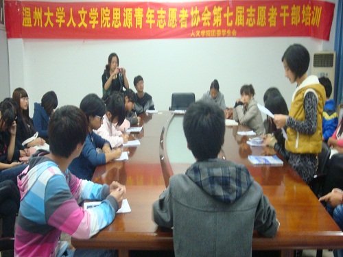 思源青协志愿者干部第二次培训。此次培训以辩论赛的形式分组进行。评委们悉数到场给予支持和鼓励,各位选手也在经过充分准备后自信满满地来到了现场。