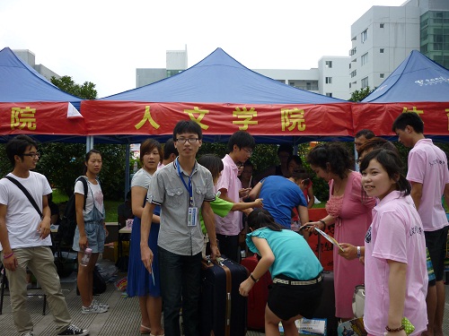从7日早晨开始,就有学生陆陆续续地前来学院报到,在迎新区的志愿者和学生会的成员们热情的为他们做着引导,先是拿着他们的身份证和录取通知书进行新生注册,然后帮他们领取寝室钥匙和一卡通,最后分配人员带他们开票买生活用品,并且还帮他们把行李搬到寝室。几天的迎新工作中,虽然天气很热,任务繁重。但是我们的工作人员表现出了极大地责任心与热情,他们为新生耐心地解答着疑问,并且嘱咐他们注意安全,不要相信上门推销的物品,并且还热情帮助需要留宿的家长登记,安排在学校住宿。