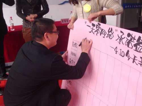 3个班级根据本次的“零网络”主题向大家呈现了一场精彩的表演。最后,在场的老师及承诺者在承诺签名榜上郑重写下了自己的名字,至此,本次启动仪式圆满结束。