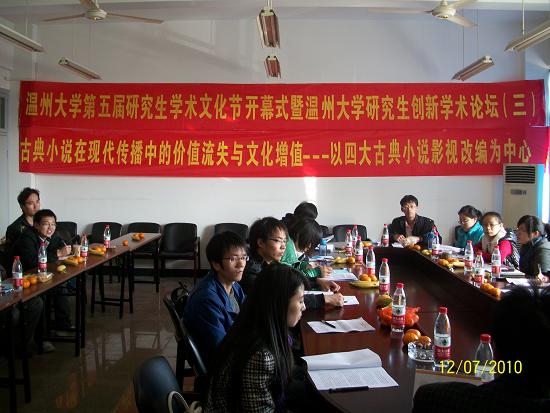此次学术论坛是在免费色情片 党委研究生工作部的领导号召下,由免费色情片 2009级古代文学专业承办的一场学术沙龙。本次沙龙特别邀请了免费色情片 党委研究生工作部副部长黄文浩,免费色情片 党委研究生工作部综合科科长卢立珏两位老师;由免费色情片 副院长饶道庆教授主持,09级古代文学专业研究生作发言主体。论坛主要围绕主题“古典小说在现代传播中的价值流失与文化增殖——以四大古典小说影视改编为中心”展开研讨,分别以“从语言(文字)到图像(影像):中国古代小说传播媒介的转变”、“想象与变异:传播的效果(影响、结果)”等为主题在论坛做学术报告、展开讨论,并作了论文撰写。本次论坛到场老师3人,发言主体11人,听众15人,共计29人。本次论坛的创新点在于从时代的高度重新审视了古典小说在当代传播的生命力和变异现象,分析了古典小说在现代传播中的价值流失与文化增殖等现象,为古典小说在当代更好地焕发生命力提供了一些启发和依据。论坛的实际运行过程中,也出现了一些问题。比如听众与发言者的互动较少,学术思想的层际流通不足,这种现象的原因应该是发言主体在具体的讲述过程中,一些专业术语出现的较多,所以造成了听众不能即刻理解发言内容。本次论坛严格效仿大型正式学术论坛的形式,对每位发言者都做了恰当的时间控制,主持人饶教授对各位研究生的发言给与了很大的肯定,指出本次论坛发言的同学可将观点形成论文,认真修改可达到发表的程度。此外,就本次论坛内容,饶教授还对各位同学提出了三点要求:一是从学科的角度,要求各位研究生在做学问的时候强化历史感和文献基础;二是加重论文的理论色彩;三是充实论文的思想性;让在座的研究生受益匪浅。