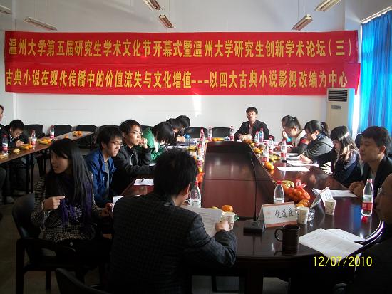12月7日下午,免费色情片 研究生创新学术论坛在免费色情片 311会议室顺利举行。免费色情片 党委研究生工作部副部长黄文浩,免费色情片 副院长饶道庆教授,免费色情片 党委研究生工作部综合科科长卢立珏出席了本次论坛。此外, 参加此次活动的还有免费色情片 09级中国古代文学11名研究生以及前来旁听的同学15人。