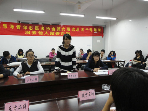 思源青年志愿者协会在人文楼311会议室开展了志愿者干部培训第二课之志愿者辩论赛,思源青年志愿者参加了此次辩论赛。