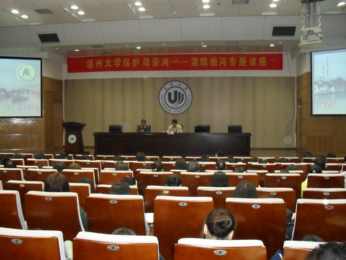 温瑞塘河志愿服务站在北校信息楼报告厅开展了以“保护母亲河,牵手护塘河”为主题的讲座。本次讲座,有幸请到了温瑞塘河管委会张俊凯副主席做讲座,校团委书记杨立淮老师及校团委老师曾国仕共同出席了本次讲座。