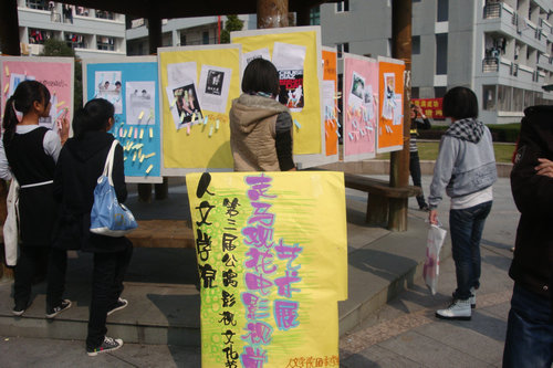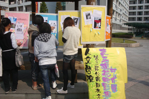 公寓自律委员会协同团委学生会心理部于C区中心花园共同展开公寓电影文化节的第二轮活动——电影视角艺术展。面向全校让学生们投票属于自己的最佳影片。
