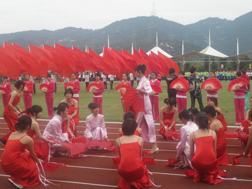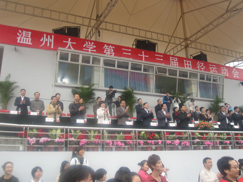 的扇子舞,在柔美中蕴含着力量;建筑与工程学院现场搭成的“中国馆”;教师教育学院活力四射的啦啦操等等。紧接着,校长蔡袁强致开幕词。在肯定学校体育基础设施建设发展迅速、体育活动内容形式多、广大师生身体素质和精神面貌良好的体育事业发展新格局后,还对此次校运会的顺利开展进行展望。最后,校运会运动员代表和裁判员代表分别进行了庄严的宣誓活动。
