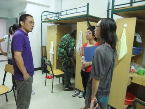党总支副书记骆锤炼老师、辅导员叶豪芳老师、10级中本一班班主任陈源源老师、小班主任俞玉颖同学等一行人走访了综合楼的各新生寝室。