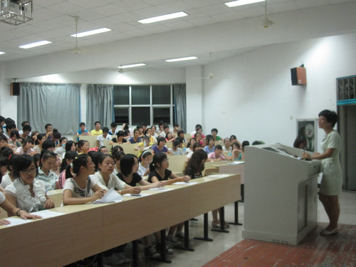 动员大会主要分为三个流程。首先由辅导员叶老师进行动员讲话,她联系自身的军训体验向同学们提出了许多贴心的要求与建议,简短朴实的话语饱含着对新生的厚望。接着由刚军训完毕的09级学生冯晓霞发表军训感言,身着迷彩服的她显得格外精神,向学弟学妹们道出了切身体会。大会的最后,主持人陈媛媛宣读了军训考核规章、军训评优原则等文件,并对大一新生致以美好的祝福。
