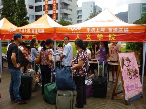 团委、学生会部分成员以及人文热心志愿者在C区早早等候10级新生的到来,为他们提供最周到的服务。