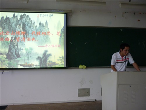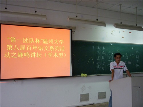 第八届百年语文系列活动之鹿鸣讲坛(学习型)坛主08中本三班张佳峰同学开设了一场题为“中国艺术生命精神和性灵寄托为题研究”的讲座。