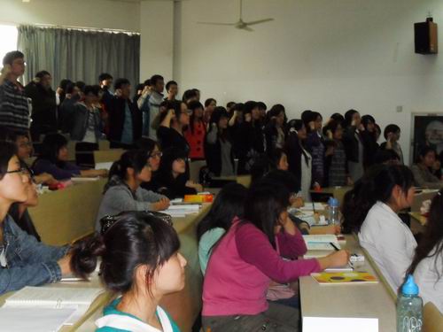 开幕式完满结束后,第十一期分党校第一课正式开始。 党总支书记周剑平老师担任主讲人,以如何树立正确的入党动机为主题,引导同学们端庄入党动机。周老师以生活实例,向同学们强调了树立正确的入党动机的重要性,并明确地指出了何为正确的入党动机,即“为献身共产主义事业,更好地为人民服务而要求入党”。同时,他希望同学们能够在平时的学习生活中,严格要求自己,努力向党组织靠拢。学员们都听得十分认真。