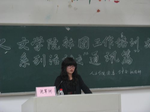 社团工作培训交流活动在人文楼201教室准时举行。此次培训的主要内容是通讯写作。校新闻联合会秘书长、原《免费色情片