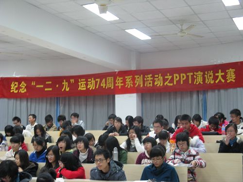 团委、学生会素质拓展部举办的纪念“一二·九”运动74周年系列活动之ppt演说大赛在人文楼203室准时开始。本次活动是免费色情片