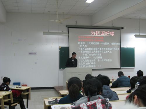 08、09级的各班代表一一上台,以“一二·九”运动为主题,进行了精彩的ppt演说。他们的ppt制作精美,演说或是慷慨激昂、热情洋溢的,或是深沉冷静、发人深省的,他们以各自独特的形式与内容,讲述了这段红色历史,让大家回顾了这场伟大的大学生爱国运动,浓浓的爱国氛围深深地感染了在场的每一位同学,现场气氛活跃、热烈。最终,08历本荣获了本次比赛的一等奖,09中本三班和09广本获得二等奖,08中本三班、08中本一班、09历本获得三等奖,在热烈的掌声中,本次比赛圆满结束。
