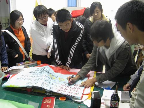 团委学生会宣传部办公室,大家亲手实践绘制海报,现场气氛活跃而又融洽,直至晚上8:00本次培训圆满结束。