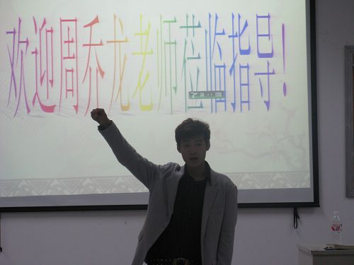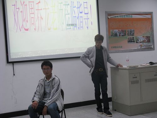 第八届校园话剧节话剧表演专场讲座在大学生活动中心素拓办公室举行,毕业于中央戏剧学院的知名演员、副导演周乔龙老师担任主讲。