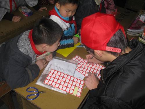 中午12:30分志愿者们在C区门口集合出发,虽然下着雨,但大家兴致很高。来到益民小学后,志愿者们领到了书签,然后分组进入班级整理爱心书籍。志愿者们先将同学们的爱心书籍收集到一处,并给每本书贴上标签,注明编号和姓名。然后再选出一名图书管理员,志愿者将写有借书日期、归还日等内容的本子交给他们,让他们自己对班级的图书进行管理,方便同学们借阅,防止图书流失。益民小学的孩子们都积极参与到了活动中,将自己的图书拿出来分享。志愿者们也忙得不亦乐乎。