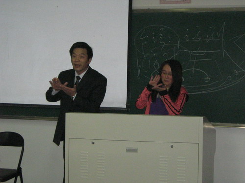 音乐学院高级讲师高光明老师主讲。他是农历剧社的专业指导老师,有着资深的话剧表演经历。高老师的讲授精彩十分,使在座的爱好话剧的同学受益匪浅。