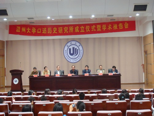 口述历史研究所的批复。赵敏教授发言,为研究所授牌,并为顾问颁发聘书。接着,于沛教授致主题辞,同时着重介绍了成立研究所的重大意义。而后,杨祥银博士也发言指出研究所的成立能推动温州口述历史的研究和口述历史的课程改革。