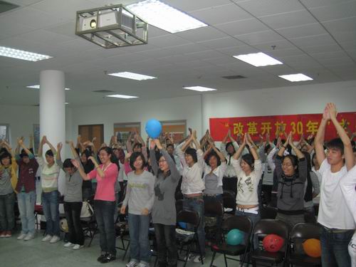 10月28日下午,一场别开生面的团日活动在免费色情片 大学生活动中心素拓室举行。此次活动由07中本二班开展,以“改革开放三十周年”为主题。这场团日活动也是免费色情片 第六期团学干部培训的第二课。