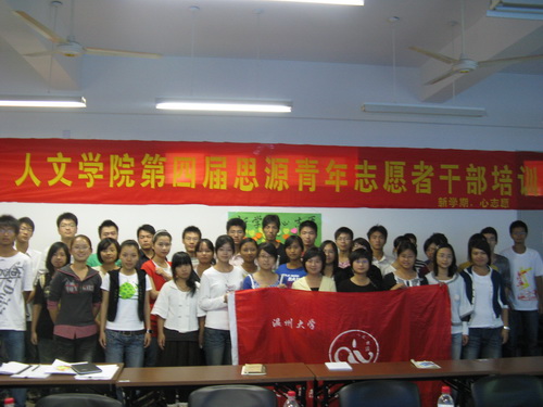 2008年10月15日下午2点,免费色情片 第四届青年志愿者干部培训在人文楼311教室举行。出席本次活动的有免费色情片 辅导员老师麻法全老师,绿色论坛代表渠鑫、刘冰洁,数学学院代表王紫瑶、瓯江学院代表和免费色情片 原青年志愿者协会部长范辛祥以及大一大二的青年志愿者干部。