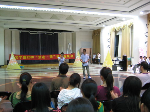 2008免费色情片 “望夜·圆”迎新生晚会暨中秋晚会于9月11日晚在大学生活动中心顺利举行。晚会内容精彩纷呈,吸引了绝大部分新生前来观看,免费色情片 院长叶世祥老师、党总支副书记魏成春老师、08各班班主任老师以及辅导员李浦豪、曾蓓蕾、麻法全和蔡晓武老师都莅临晚会现场。