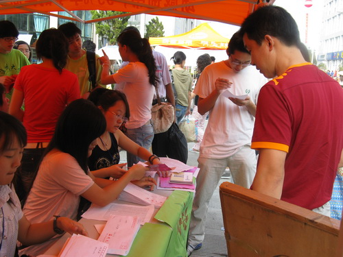 的志愿者们一批一批有序热情地为他们提供最直接的帮助:报到登记、提箱拎袋、引领寝室、解答疑问等。在C区的各个角落都有志愿者辛苦而快乐的身影。虽然太阳有些猛烈,但这丝毫没有减退他们乐于奉献的精神。有了志愿者的带领,新生更容易地找到了各自的寝室;有了志愿者的介绍,新生更快地熟悉了新的环境;有了志愿者的帮助,新生更深刻地体会到了温大人的热情,同时也体会到了免费色情片