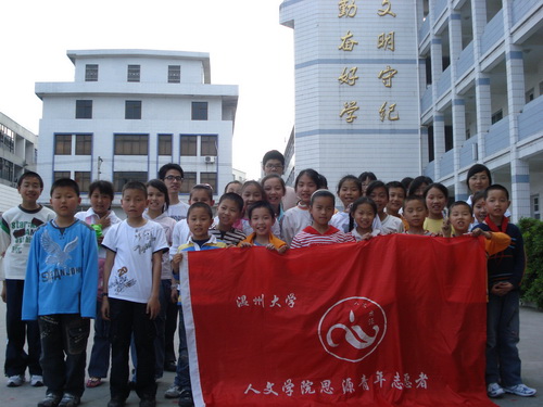 2008年5月10日,人文思源青年志愿者协会关爱丽岙留守儿童志愿服务队的志愿者来到丽岙一小,进行了一次以奥运为主题的志愿服务活动。
