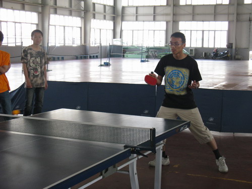 首先进行的是人文女队与商学院女队的比赛。人文代表队凭借队员实力上的优势先拔头筹。商学院女队随后便展开了反击。双方势均力敌,比赛进入拉锯战。精彩的扣杀、反拉屡屡出现。拉拉队也在场边不断地加油助威。但最终人文女队却在先赢一局的情况下被对手连扳三局,以1:3丢掉首场比赛的胜利。男队的比赛稍后开始。男队员们一路高歌猛进,顺利拿下比赛。