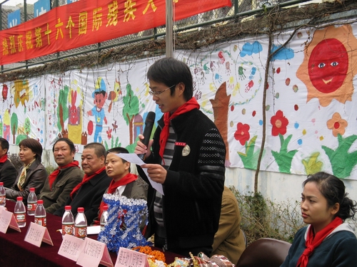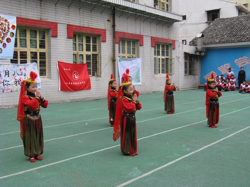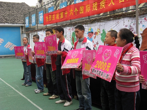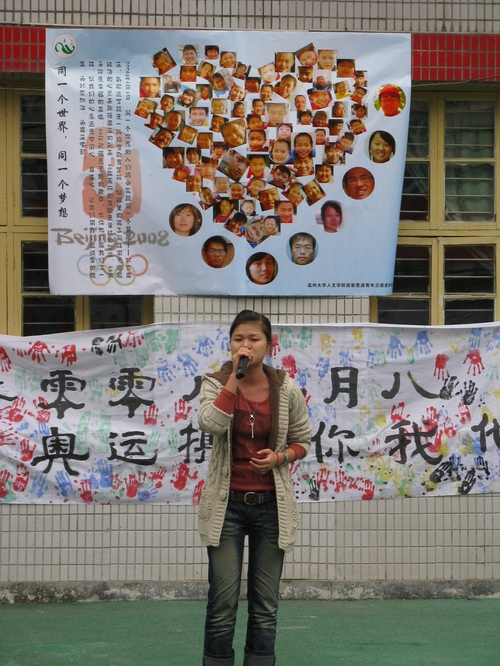 一场爱心捐赠仪式首先在联欢活动前展开,社会上的爱心人士纷纷慷慨解囊,为新码道的学生献上一份爱心。据报道,温州天意达房地产有限公司、鸿昌钢管制造有限公司等单位共捐款达9.9万元。随后,由温大人文思源的志愿者、温州五幼的师生、温州医学院志愿者和新码道学生共同带来的文艺联欢活动正式开始。新码道孩子们的一支歌伴舞首先拉开了联欢活动的序幕,接下来五幼的师生也带来了十分精彩的表演,而我们的志愿者也送出了自己精彩的节目:《唱响奥运,同一个梦想》双人朗诵,女生独唱《祈祷》。联欢中志愿者还和孩子们一同做游戏,将整个气氛推向了高潮,最后一曲《让世界充满爱》将整个活动画上了圆满的句号。