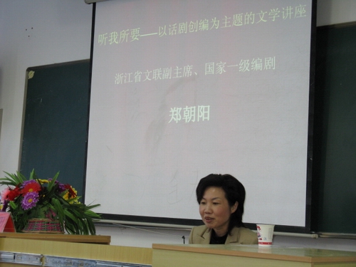 11月21日下午2点30分,继免费色情片 校园话剧节开幕式后,我们迎来了以“话剧在中国”为主题的文学讲座。此次讲座,免费色情片 有幸邀请到国家一级编剧、浙江省文联副主席郑朝阳老师来为我们高教园区的学子们主讲。在北校区人文楼201教室,同学们准时赴场,座无虚席。
