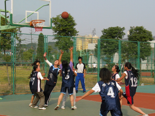 比赛还未开始,赛场上就弥散开一股硝烟味。果然,开赛仅几秒钟,商学院就利用一次快攻轻松拿下2分。人文毫不示弱,马上还以颜色。随后双方进行了积极的抢拼,回防,进攻,投篮……引得场边观众一阵阵欢呼。最后,人文刘世卉的一记中投将第一节比分锁定为5:4。
