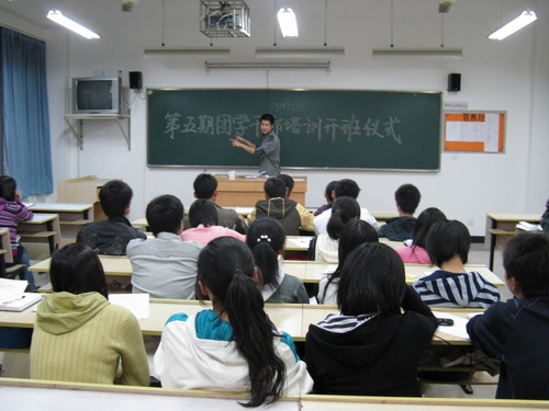 为了适应新形势下高校团学工作的需要,提高团学干部的政治思想素质、业务能力,培养团学干部的创新能力、服务意识,通过团学干部带动全校同学的积极性和热情,促进大学生素质拓展计划的实施,为在校生的成长成才创造良好的条件和平台。免费色情片 第五期团学干部培训班于11月8日晚正式开班。免费色情片 辅导员屠建斌、学生会主席卢浩亮及07及全体团委学生会心成员共同参加了此次会议。