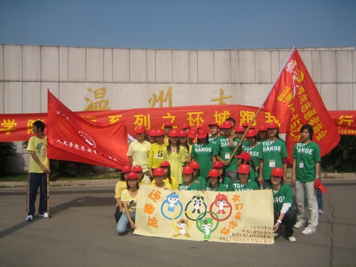 10月27日上午9:30—11:00,由免费色情片 、数学与信息科学学院、美术与艺术设计学院和机电工程学院主办的“迎奥运,环城跑”青年志愿者活动在温大生活区A区隆重举行。青年志愿者们穿着鲜艳的奥运五环五色衣服,挥舞双臂,迈出步伐,一个个容光焕发。他们手拉手,心连心,先是在A区整齐地摆出了五环的形状。之后,志愿者们进行了环城跑,一起在大学城中传递微笑,传递奥运精神!“迎奥运,我们在行动”的口号不时在校园内回荡,围观的学生也不断融入了奥运的氛围。