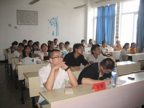 资深讲师万军担任评委,近26名同学参加了角逐.大赛要求说课对象为中小学生,主要学科为语文、历史.其中内容包括教材分析、教学目标、教学方法、学法指导、教学手段以及教学过程等.时间控制为5分钟. 比赛在一种和谐的环境中拉开了序幕,选手们经精心装扮一番后,个个神采奕奕,充分展现了未来教师的风采,声情并茂的演说时时引来场下观众热烈的掌声.在各选手中,04级的同学显然经验丰富,表现尤为出色.其中彭玲芳同学的《人类文明的 “引擎” ----向距离挑战》等课题给评委和观众都留下了深刻的印象.
