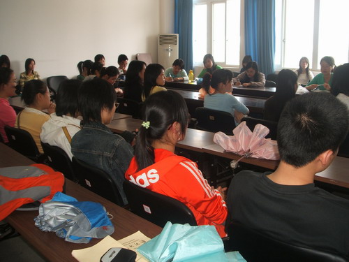 举办了一次考研、考公务员的交流会。并且邀请了4位2006届的毕业生给我们现场解答。他们分别是:考取杭州海关的郑路以、考取瑞安国税局的薛绿洲、考取文艺学研究生的林志和考取民俗学研究生的何海燕。首先他们给我们大概介绍了考试的相关流程,让我们对复习、报名、考试有了一个粗略的认识。并且也比较仔细地谈了自己的复习计划和复习方法,推荐了几本不错的参考书,让我们受益匪浅。林志还给我们介绍了学习英语的好方法,就是背单词必须要把它放在具体的语境中去,这不仅对记忆有帮助而且有利于培养语感、提高写作能力。另外仔细学习大学英语的四册课文也是一个不错的选择。