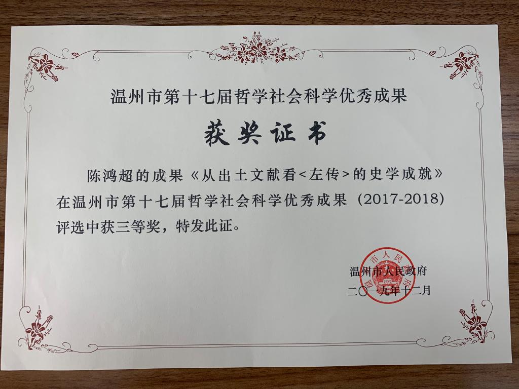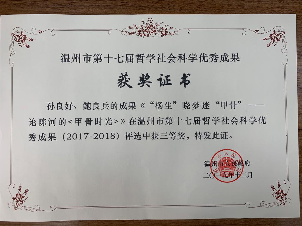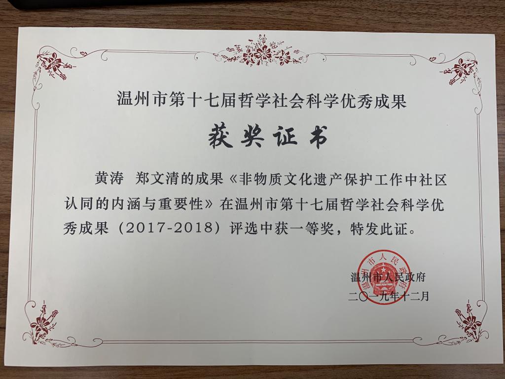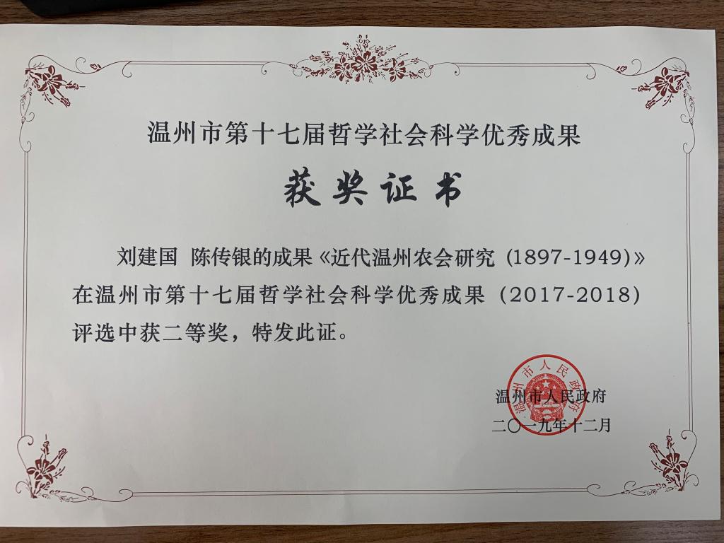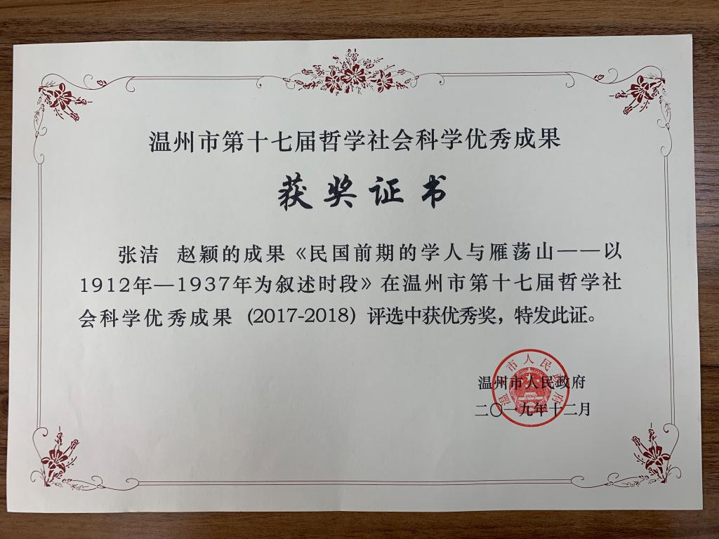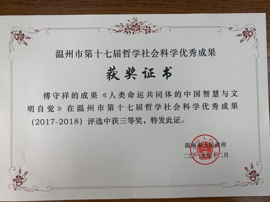 温州市第十七届哲学社会科学优秀成果奖