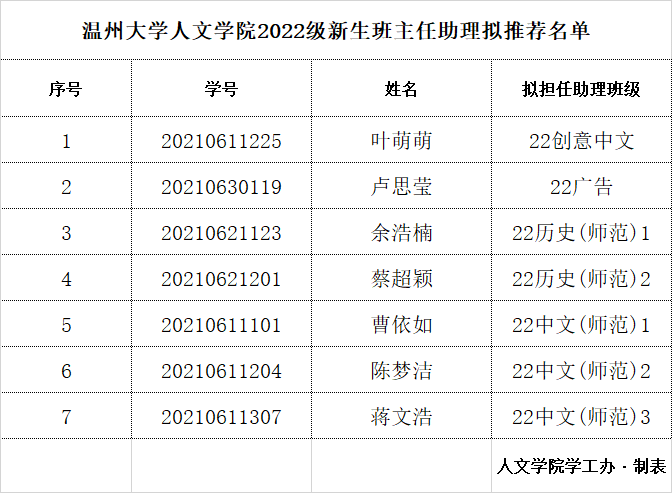 根据学校《关于招募2022级新生班主任助理的通知》要求和相关文件精神,经过学生个人申请、学院初审、公开竞聘等环节,按照专业相近原则,现将免费色情片 2022级新生班主任助理拟推荐名单公示如下。