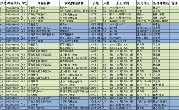 2016-2017-2学期本科实践教学安排表