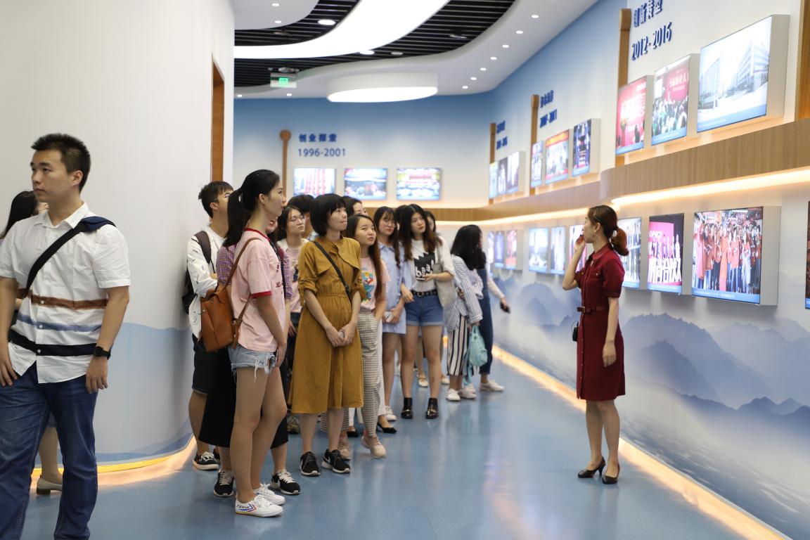 上午9时30分,参赛选手到达森马集团企业展示厅。森马集团有限公司是一家以多品牌服饰经营为主,跨产业经营的综合性民营公司,近些年在温州乃至全国业绩姣姣。讲解员详细介绍了企业从创业之初的资金投入到平台拓展一系列的发展历程,尤其强调董事长邱光和提出的“小河有水大河满”的互利共赢企业理念。参赛选手对这个杰出的温州本土企业产生浓厚的兴趣,随后交流与讨论活动在展厅中积极火热地展开。