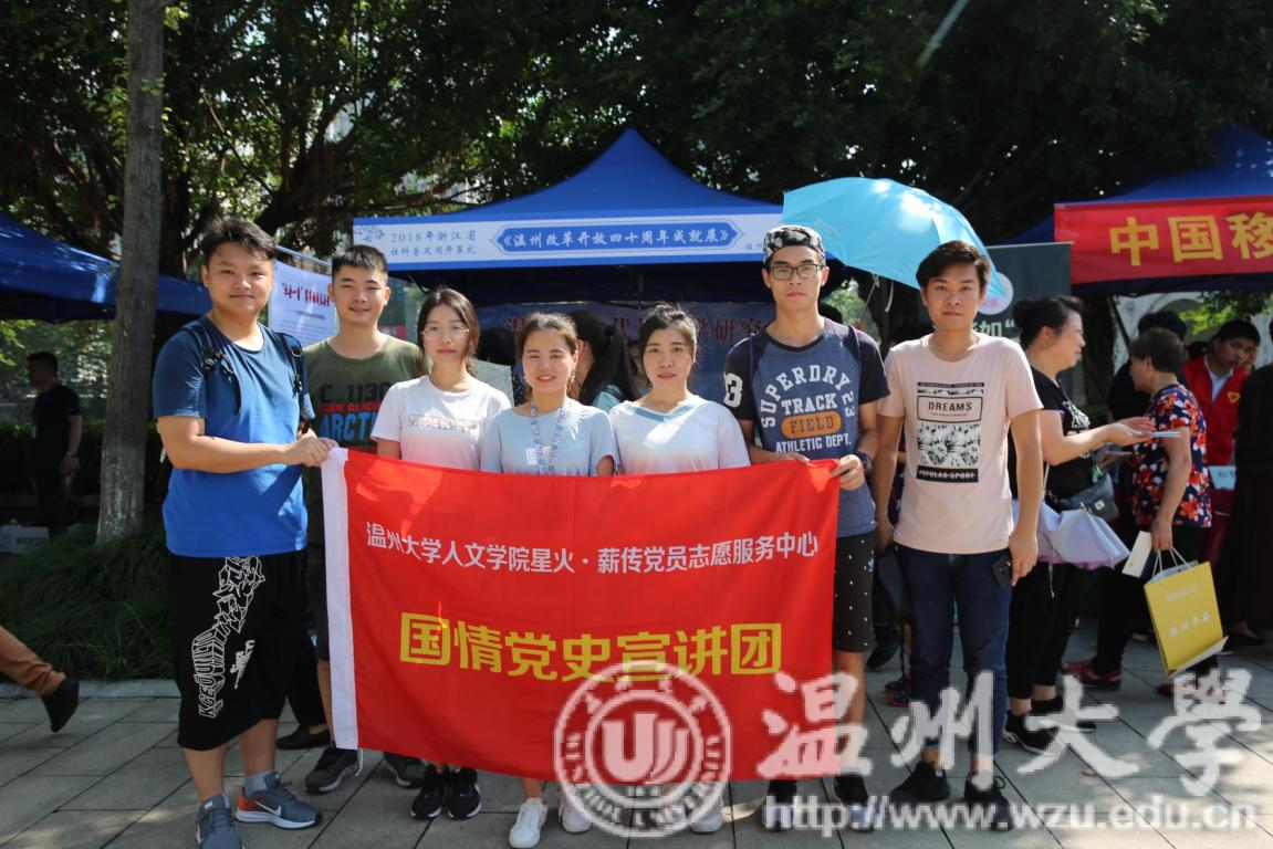 为提高宣讲能力和坚实文化基础,2018年9月19日,人文学院“星火·薪传”党员志愿服务中心之国情党史宣讲团在指导老师刘建国的带领下,配合温州市历史学会积极参加了浙江省2018年社科普及周开幕式暨温州市社科普及年会。