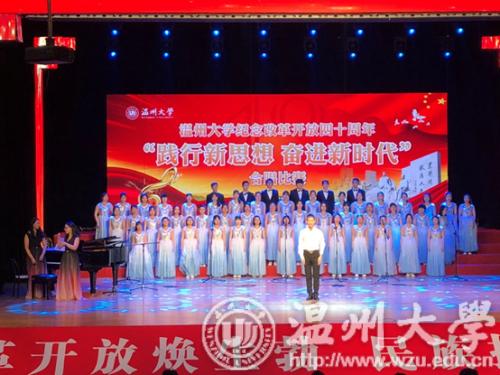 本次比赛按照改革开放四十周年的历史时间顺序分为了三个篇章,分别是第一篇章:改革之风,第二篇章:春天的故事以及第三篇章:不忘初心。来自17个学院的代表队参加本次比赛,《黄水谣》、《青春的旋律》、《爱我中华》、《祖国不会忘记》、《不忘初心》等昂扬豪情的歌曲不仅倾诉了温大学子热爱共产党、热爱祖国的心声,也表达了新时代青年学生对中国踏上富强征程的美好祝愿。豪迈嘹亮的歌声回荡在育英大礼堂,连空气中都满是壮志昂扬,引起台下观众强烈共鸣,整场比赛掌声不断,经久不息。