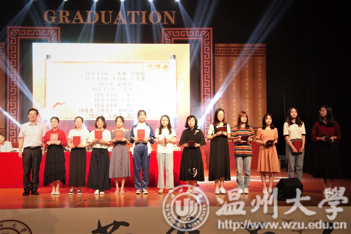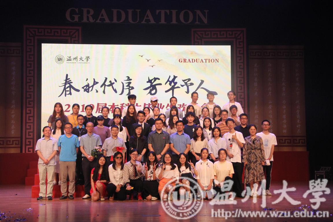 2019年6月17日晚,免费色情片 于育英大礼堂举行了2019届毕业典礼暨毕业生欢送会。出席本次晚会的嘉宾有免费色情片 院长孙良好,党委书记吴静,副院长毛继光、朱晓申、刘建国、席留生、郑春生以及毕业班班主任、辅导员和全体毕业生。 首先,在庄重的国歌声中,首先举行的是毕业生典礼。孙良好院长语在毕业致辞中告诉毕业生们,不管是读书还是工作,最重要的是“认识你自己”,无论生活多么繁忙也要坚持读书,因为读到深处便是读自己。接下来是毕业生班主任代表蒋述老师发言,她带着毕业生们将大学生活再次回味了一遍,并告诉他们:“常回家看看!”之后,毕业生代表屠婧斓表达了对母校的不舍同时也做了对未来的美好憧憬。在颁奖环节里,老师们对获得国家奖学金获得者、浙江省优秀毕业生获得者、学校优秀毕业生获得者、陈志远写作奖获得者以及考上研究生的同学进行颁奖和表彰。