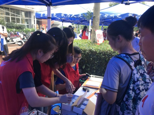 来来往往的车熙熙攘攘,大包小包里,充满的都是父母对子女的深情。今日,家长带着19级新生们踏上了大学的征途,托行李、办宽带,父母将一丝不苟的爱装进了新生们暖暖的被子里。长长的队伍,一眼望去,是迫不及待想要融入大学生活的眼睛。红色的衣衫在秋光的照耀下显得格外的鲜亮,志愿者们帮助新生搬运行李,为他们指引寝室的道路,给他们办理网上报到手续、发放校园一卡通以及入学的指引资料。志愿者们亲切的笑脸与问候,耐心的答疑与帮助,在秋天的微波里荡漾出了一圈圈温柔的涟漪,让新生们感受到了未来生活的地方有一个温暖的大家庭。