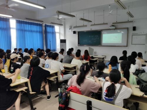 赵校长从过去、现在、未来三大视角为同学们展示了温大的深厚人文底蕴、发展现状以及发展方向,生动而立体地向同学们展示了温大“两校合并,七校融合”的年轻而又悠久的历史。在讲到学校历史时,赵校长为同学们介绍了建校时期为温大做出卓越贡献的孙诒让、黄溯初、苏步青、金嵘轩、谷超豪等各位先贤。建校86年以来,温大走出的无数优秀学子在社会各界名声显赫,如国旗设计者曾联松、美术家林树中、李鸿梁等。回顾完温大历史后,赵校长带同学们走进了今日温大,那个坐落于大罗山下的、拥有秀丽风景的温大,占地面积宽广且设备齐全。赵校长告诉大家,育英图书馆藏书丰富、齐全,学校师资力量雄厚,崇尚学术且英才荟萃,在2019年教师学术排名中荣居浙江省第六位,华彩乐章,殷殷传唱。校长又分别从教师教育、工程教育、创业教育、文理基础教育、华侨教育等方面向同学们展示了温大的办学特色以及未来的发展规划,力求不断提升学科综合实力。